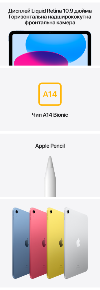 З дисплеєм Liquid Retina 10,9 дюйма на всю передню панель та у чотирьох розкішних кольорах.