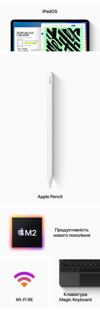 Дивовижна продуктивність, надшвидкий бездротовий зв’язок і можливість використання Apple Pencil наступного покоління.