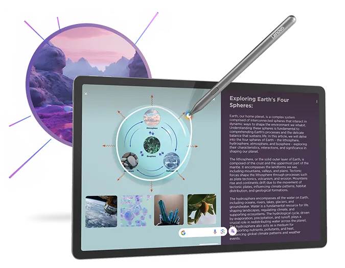 Із планшетом тобі доступний новий інструмент миттєвого пошуку, який стане у пригоді під час виконання домашніх завдань, — опція Circle to Search with Google. Щоб блискавично швидко знайти необхідні дані, тобі не потрібно виходити з програми, яку переглядаєш. Достатньо натиснути та тримати кнопку «Додому» й обвести те, що хочеш знайти, за допомогою стилуса Lenovo Tab Pen Plus чи просто пальцем.