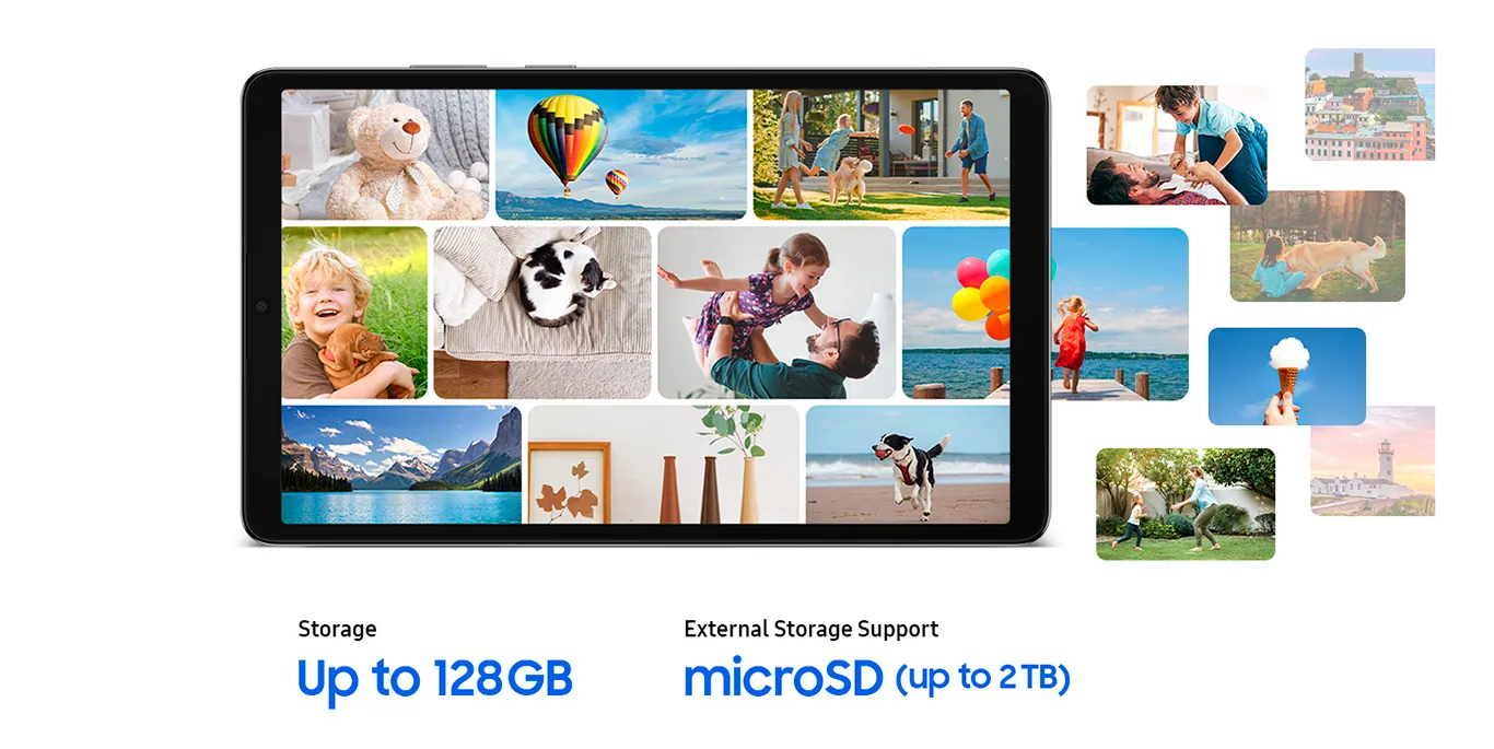 Galaxy Tab A11 пропонує великий обсяг пам'яті та сховища. Завдяки пам'яті до 8 ГБ він забезпечує швидку та плавну багатозадачність, а 128 ГБ сховища надають достатньо місця для великих файлів. Крім того, за потреби ви можете розширити обсяг сховища до 2 ТБ за допомогою картки microSD. 2