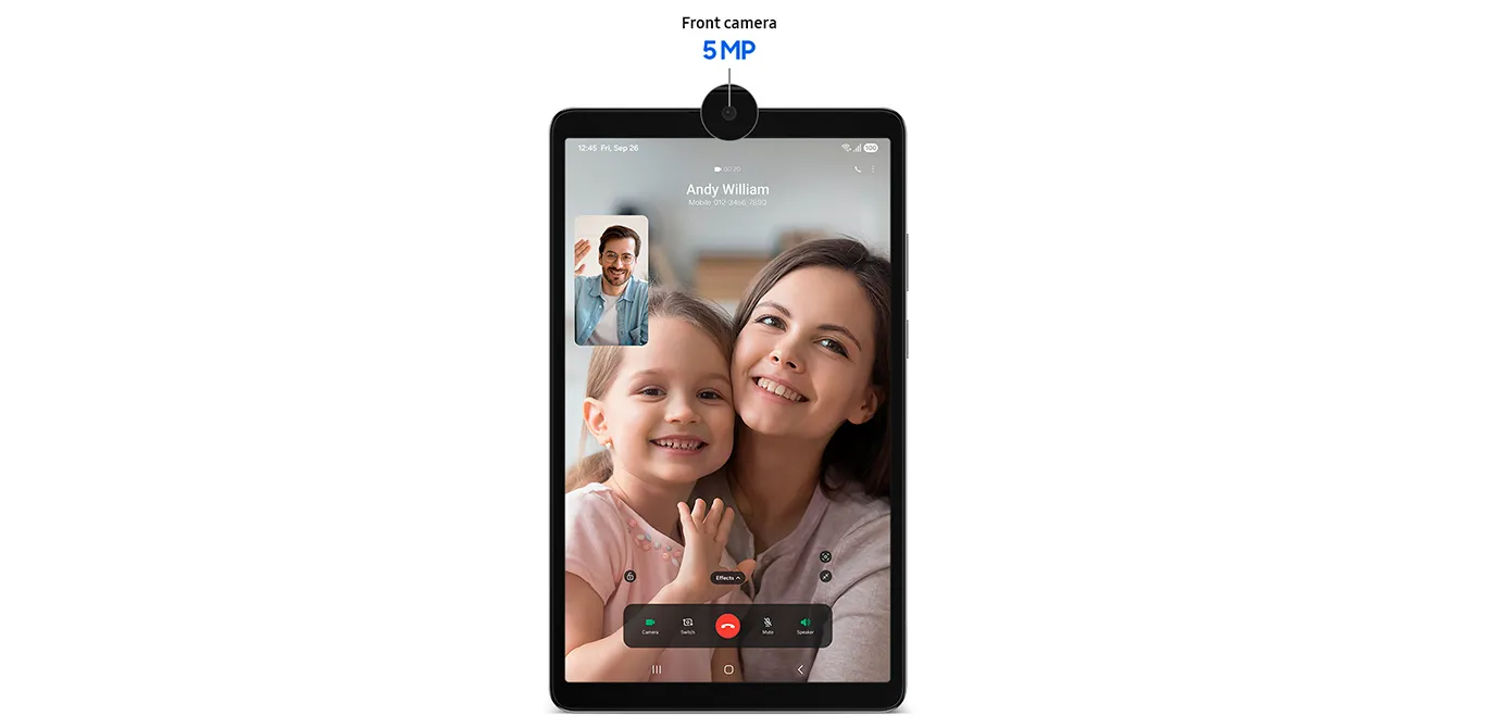 Будьте ближче. Galaxy Tab A11 оснащений фронтальною камерою на 5 МП для чіткіших і якісніших відеодзвінків. Незалежно від того, чи спілкуєтеся ви з родиною, чи працюєте в команді, покращена чіткість дозволяє бачити кожну посмішку і вираз обличчя в реалістичних деталях.
