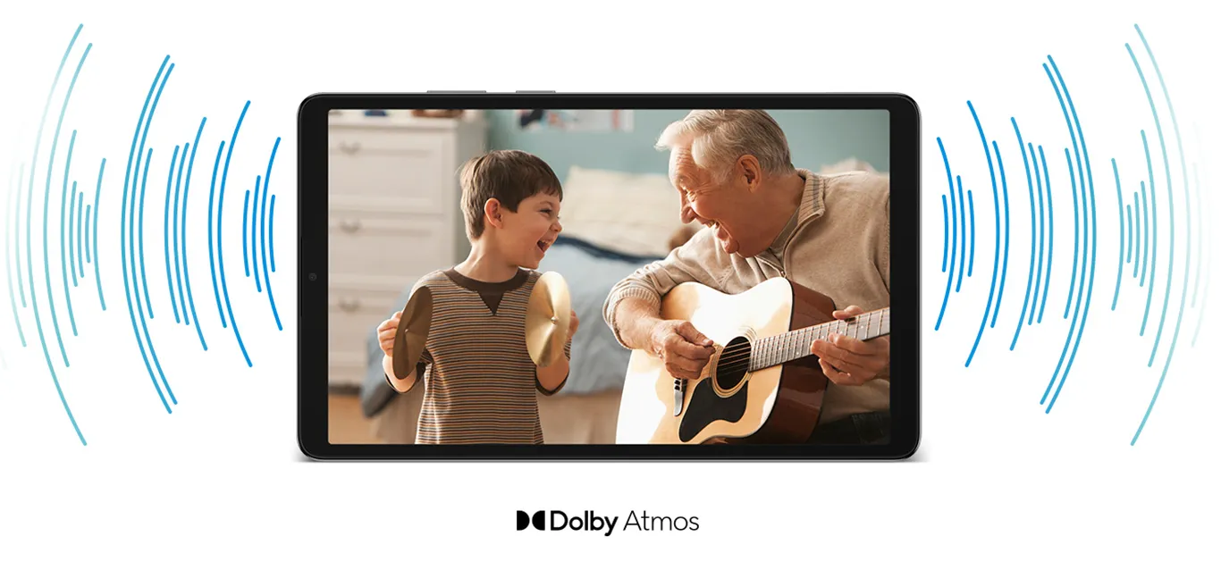 Galaxy Tab A11 оснащений подвійними динаміками, розробленими компанією Dolby, які забезпечують насичений багатовимірний звук. Від улюблених плейлистів до сучасних фільмів – захопливий 3D-звук занурює вас у дивовижно чіткий, чистий і глибокий світ звуків. Galaxy Tab A11 також оснащений аудіороз'ємом 3,5 мм, тому ви можете насолоджуватися контентом за допомогою дротових навушників із максимальним комфортом.3
