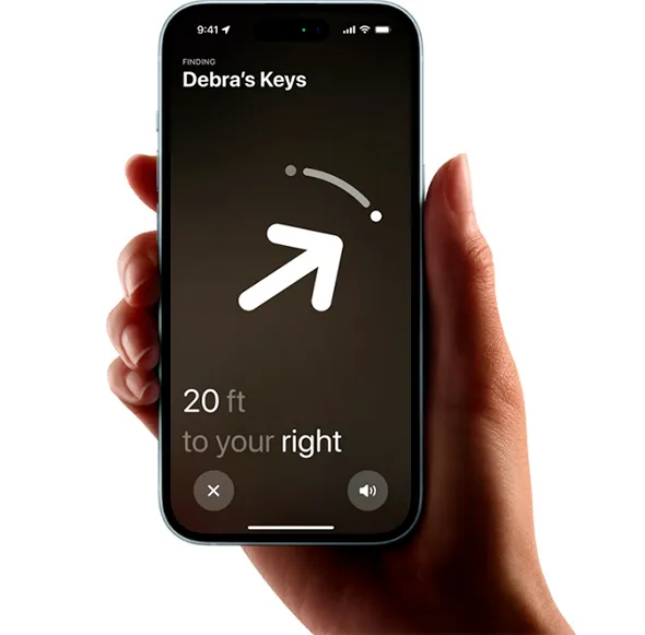 Забудьте про пошуки навмання. Коли AirTag поруч, функція «Точний пошук» перетворює iPhone на персональний навігатор. Система в реальному часі прокладає шлях до цілі, відображаючи на екрані відстань та чітку стрілку напрямку. Просто дотримуйтесь підказок, щоб знайти річ, навіть якщо вона схована під одягом.