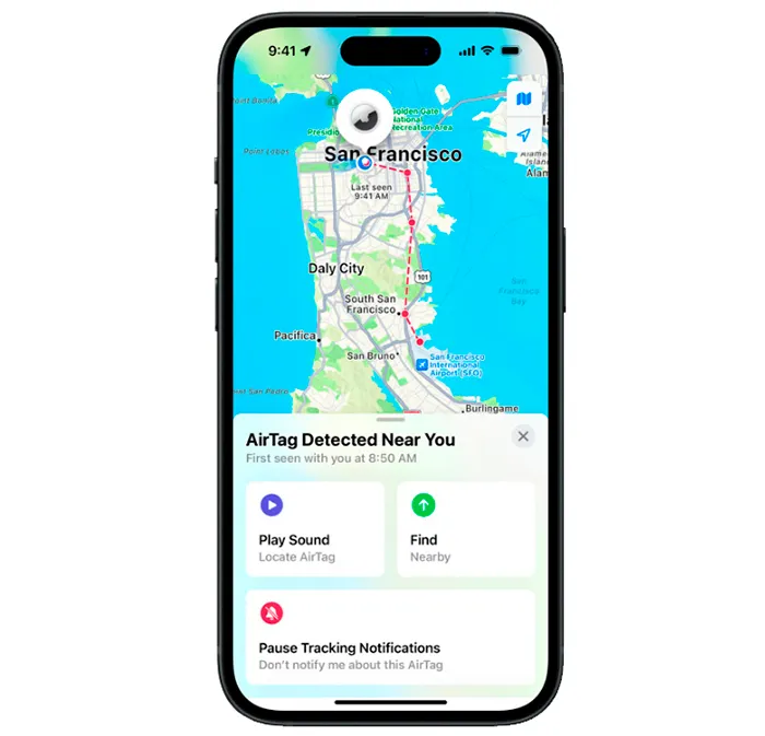 Тільки ви бачите AirTag на карті: історія переміщень не зберігається в пристрої. Дані передаються анонімно та зашифровані навіть для Apple. Вбудований захист виключає таємне стеження: iPhone одразу попередить, якщо чужий трекер опиниться у ваших речах, забезпечуючи ідеальний баланс безпеки та вашого комфорту.