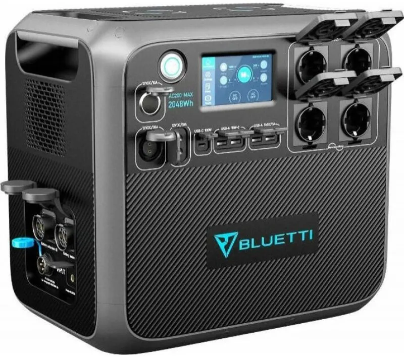BLUETTI AC200MAX — це потужна та універсальна зарядна станція з базовою ємністю 2048 Вт·год, створена для тих, хто цінує автономність і можливість масштабування. Вона оснащена інвертором із чистою синусоїдою потужністю 2200 Вт (пікова — до 4800 Вт), що дозволяє безпечно живити як чутливу електроніку, так і енергоємні побутові прилади. Це ідеальне рішення для дому, кемпінгу, подорожей та резервного живлення.