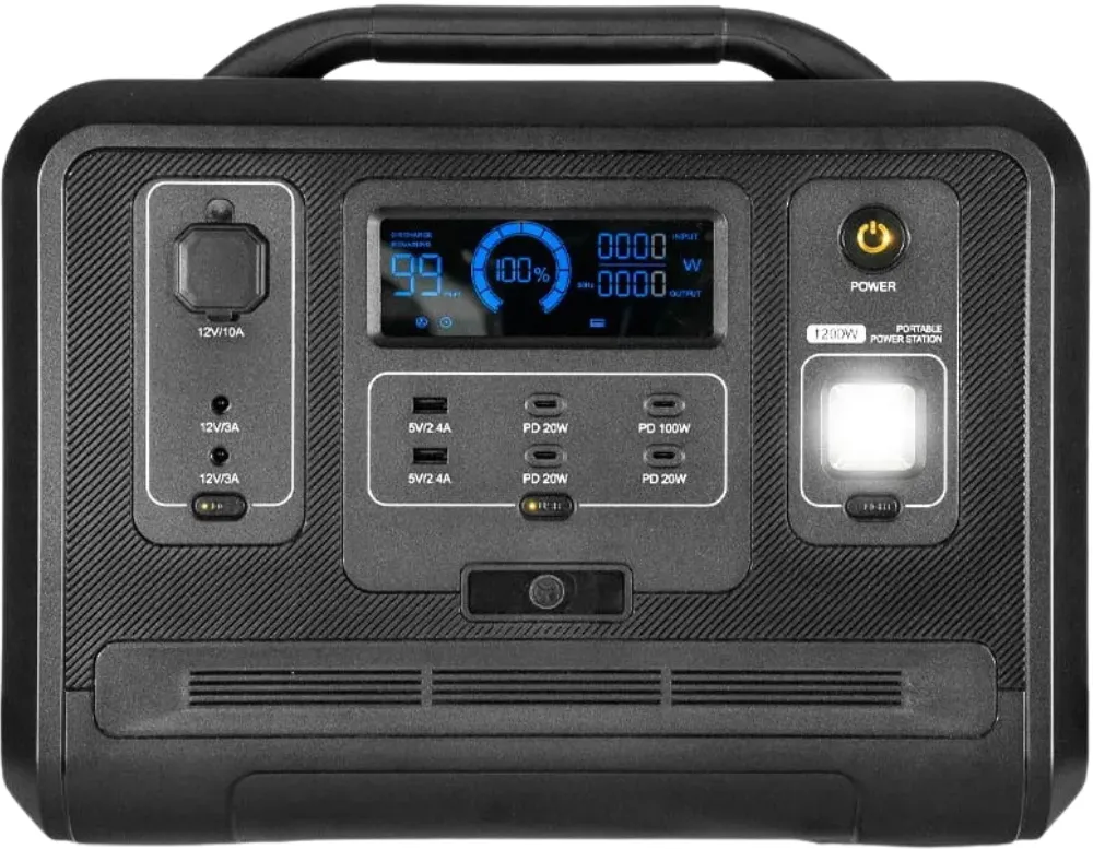 Kraft KPS-1200PGX — це універсальна портативна зарядна станція з номінальною потужністю 1200 Вт і піковою до 2400 Вт, яка забезпечує стабільне живлення 230 В з чистою синусоїдою. Завдяки режиму ДБЖ із байпасом станція може працювати безпосередньо від електромережі та миттєво переходити на живлення від акумулятора під час знеструмлення. Вбудована LiFePO4 батарея ємністю 1248 Втг гарантує високу надійність, тривалий ресурс роботи та безпеку для побутової техніки й чутливої електроніки. Станція дозволяє одночасно підключати до 9 пристроїв і підтримує кілька способів заряджання, зокрема від мережі, сонячних панелей потужністю до 500 Вт, автомобіля та PD-адаптера. Повний заряд від електромережі займає лише 1,5–2 години, що робить Kraft KPS-1200PGX ідеальним рішенням для дому, офісу, подорожей і аварійних ситуацій. Наявність USB-C PD 100 Вт, DC- та AC-портів, LCD-дисплея й LED-прожектора забезпечує максимальний комфорт і контроль у будь-яких умовах.