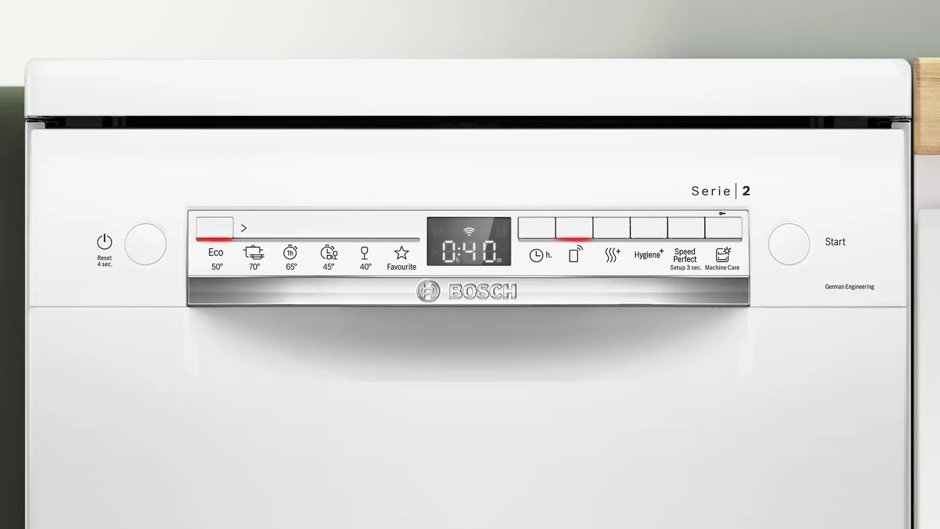 Bosch SPS2IKW55K підтримує дистанційне управління через додаток Home Connect, дозволяючи запускати та контролювати процес миття прямо зі смартфона. Внутрішній бак виконаний з нержавіючої сталі, стійкої до корозії, а технологія захисту скла дбайливо ставиться до крихкого посуду. Для безпеки передбачені AquaStop, що захищає від протікання, і блокування панелі від дітей. Класичний білий колір корпусу гармонійно впишеться в будь-який інтер'єр, а габарити 84,5 × 45 × 60 см роблять модель практичним і надійним рішенням для щоденного використання.