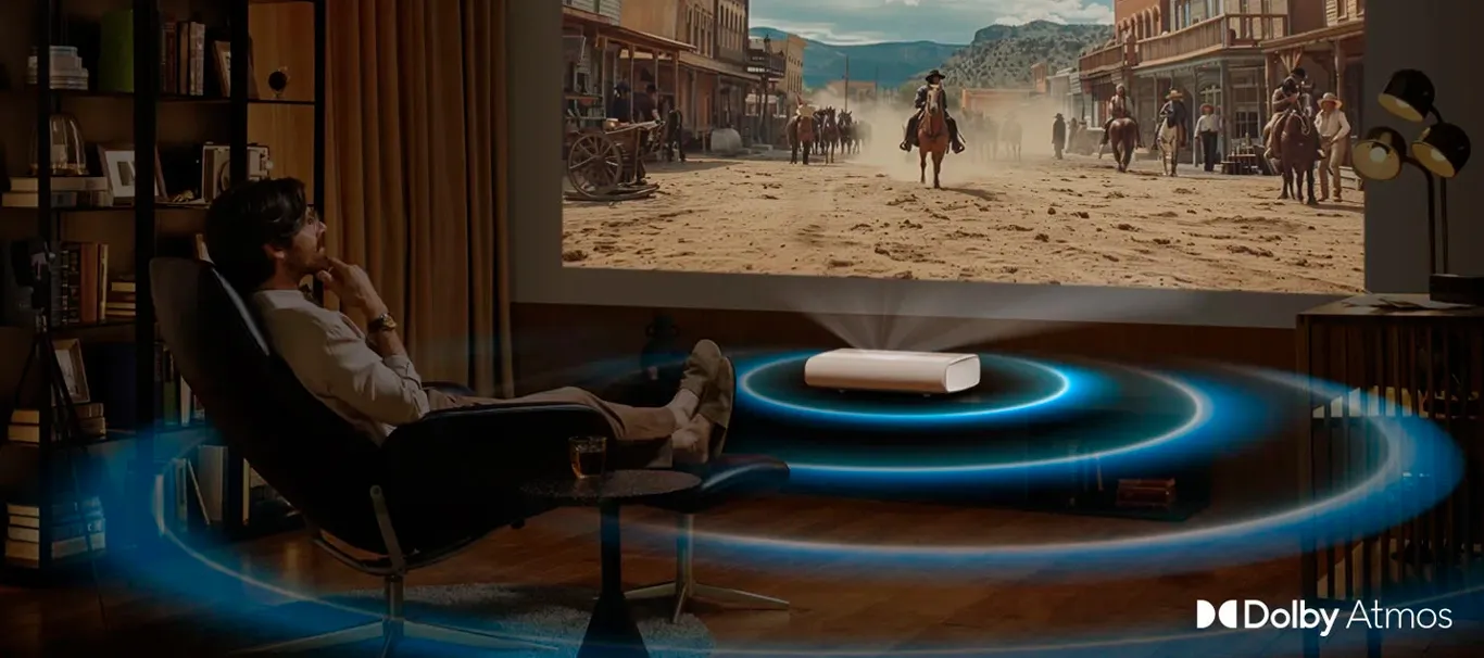 Пориньте в атмосферу кінотеатру з величезним 130-дюймовим широкоформатним екраном і насолоджуйтеся улюбленими фільмами та серіалами в приголомшливій роздільній здатності 4K.3