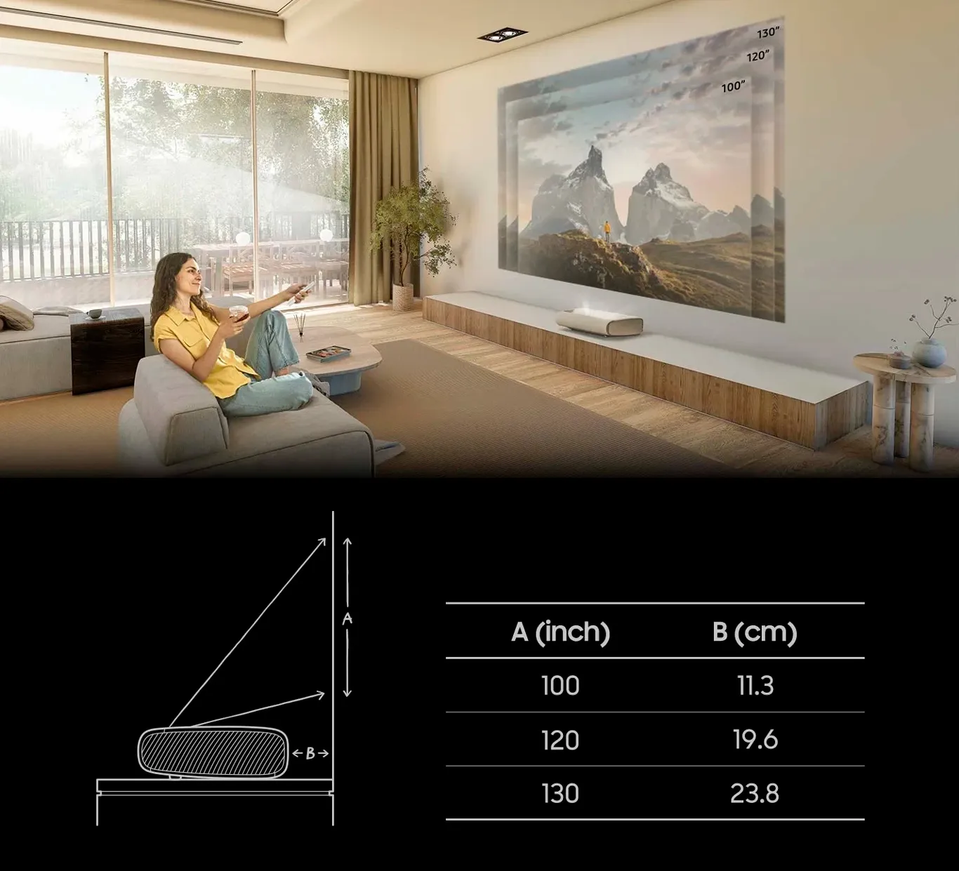 Тепер ви можете поставити проектор прямо біля стіни. Завдяки технології ультракороткого фокусу, проектор The Premiere 9 відтворює 4K-зображення до 130 дюймів з дуже близької відстані.1