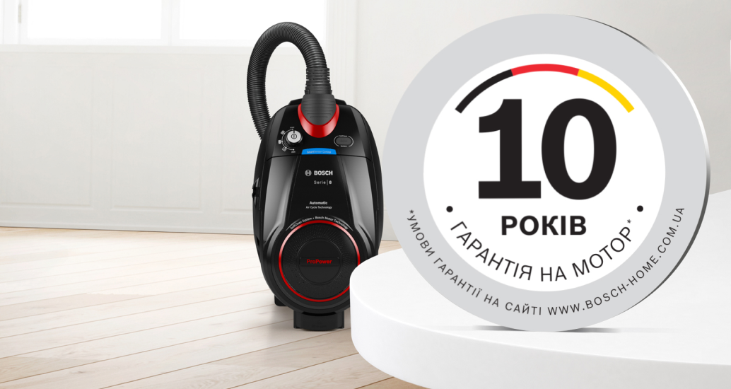 Розробляючи та виробляючи наші високопродуктивні двигуни в Німеччині вже понад 65 років, ми не тільки очікуємо, що пилосос забезпечить оптимальні результати, але і буде довговічним, що ми гарантуємо нашою 10-річною гарантією на двигун (за умови реєстрації на сайті виробника).