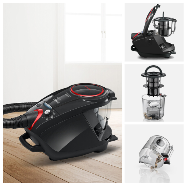 Інтелектуальний потік повітря, потужний двигун Bosch та розумні датчики гарантують високу продуктивність протягом багатьох років та ефективне розділення пилу.