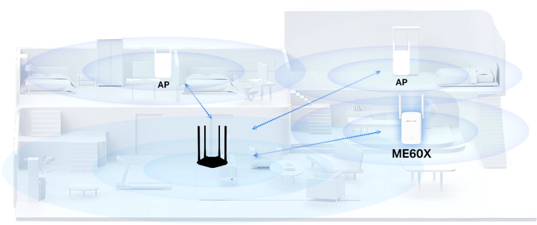 Mercusys ME60X підтримує два режими — ретранслятор і точку доступу. Для ще більшої зручності доступне мобільне застосування, яке допомагає виконати налаштування за лічені хвилини та керувати мережею як вдома, так і на відстані.