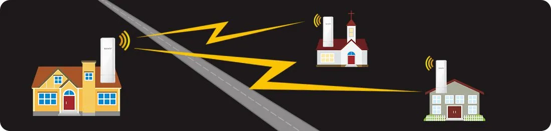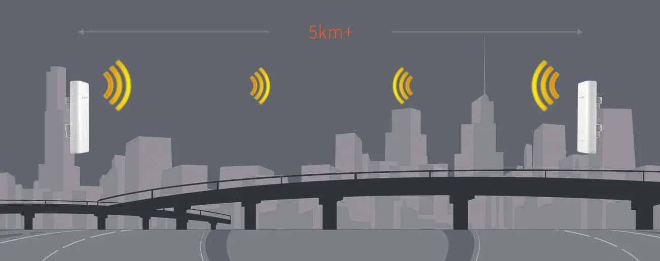 Один пристрій може працювати в режимі точки доступу, а інший - у режимі станції для створення бездротового з'єднання на великій відстані для відеоспостереження та передавання даних.