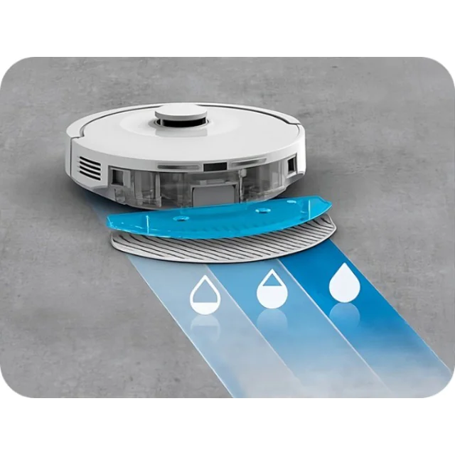 Робот-пилосос забезпечує точність і ефективність прибирання завдяки системі Smart Aqua Power із 3 рівнями подачі води, які можна встановити залежно від типу підлоги.