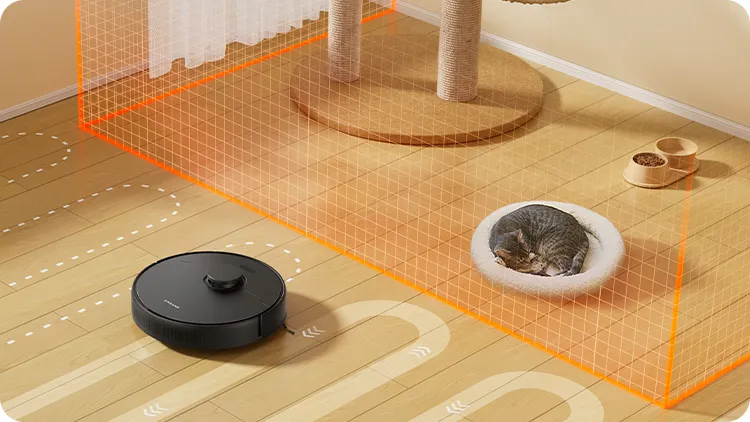 Через наявність вбудованого лазерного датчика LiDAR, робот-пилосос майстерно розуміє оточення довкола нього. Він виробляє повний скан простору на 360 градусів, створюючи докладну мапу вашого будинку вже після першого прибирання. Після цього Dreame D9 MAX Gen 2 розуміє ваш інтер'єр настільки добре, що може ефективно оминати будь-які цільові зони, уникаючи перешкод на шляху.