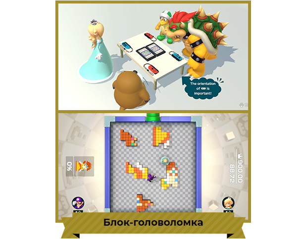 Разгадайте головоломку и установите все кусочки в нужные места, перемещаясь между двумя Nintendo Switch по трубе-телепорту.