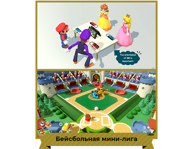 Каждому игроку нужен только один контроллер Joy-Con, чтобы сплавляться по рекам, играть в бейсбол, кататься на лошадях, готовить вкуснейшие блюда и просто развлекаться. Соревнуйтесь друг с другом в играх «все против всех» для четырех участников или объединяйтесь в команды 2 на 2 или 1 на 3. Кроме того, в совместных мини-играх вы сможете забыть о разногласиях и повеселиться все вместе. В мини-игры из «Игровой комнаты» можно играть даже на двух консолях Nintendo Switch одновременно.