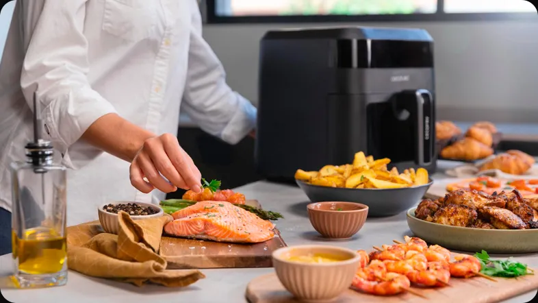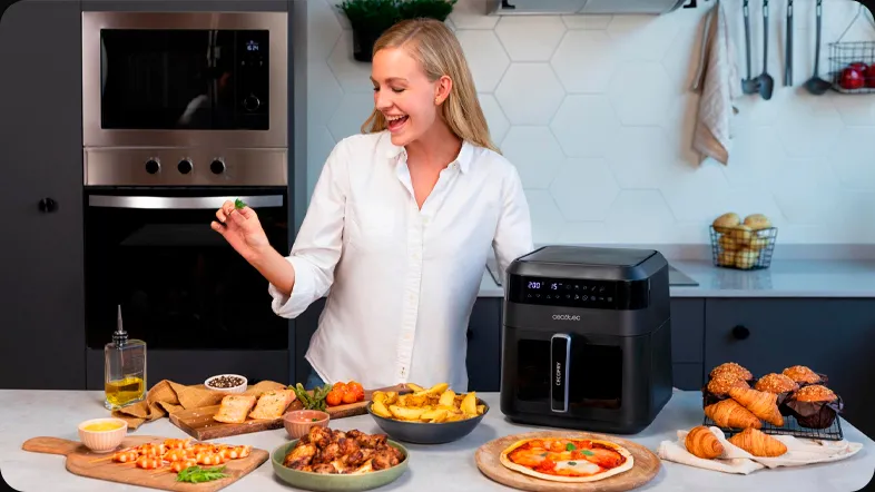 CECOTEC Cecofry Experience Window 6000 имеет 9 режимов готовки, среди которых вы точно найдете для себя подходящий вариант. Мясо или рыба, картофель и овощи, пицца, круассаны или булочки – готовьте с удовольствием. Теперь обо всем позаботится аэрогриль-фритюрница.