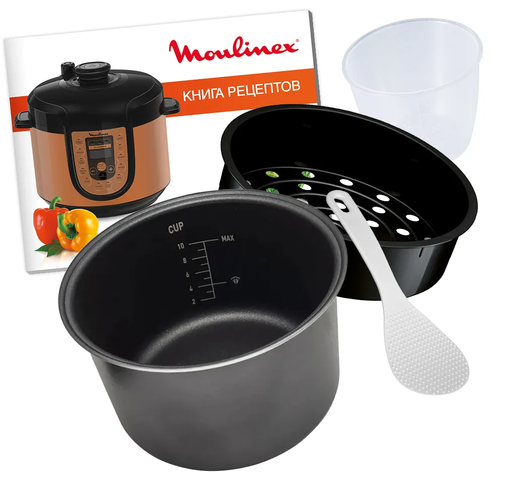 Для зручності приготування різноманітних страв мультиварка-скороварка укомплектована паровою корзиною, лопаткою, мірним стаканом. А на випадок, коли хочеться побалувати себе чимось незвичайним, можна скористатися кулінарною книгою й вибрати оригінальний рецепт.