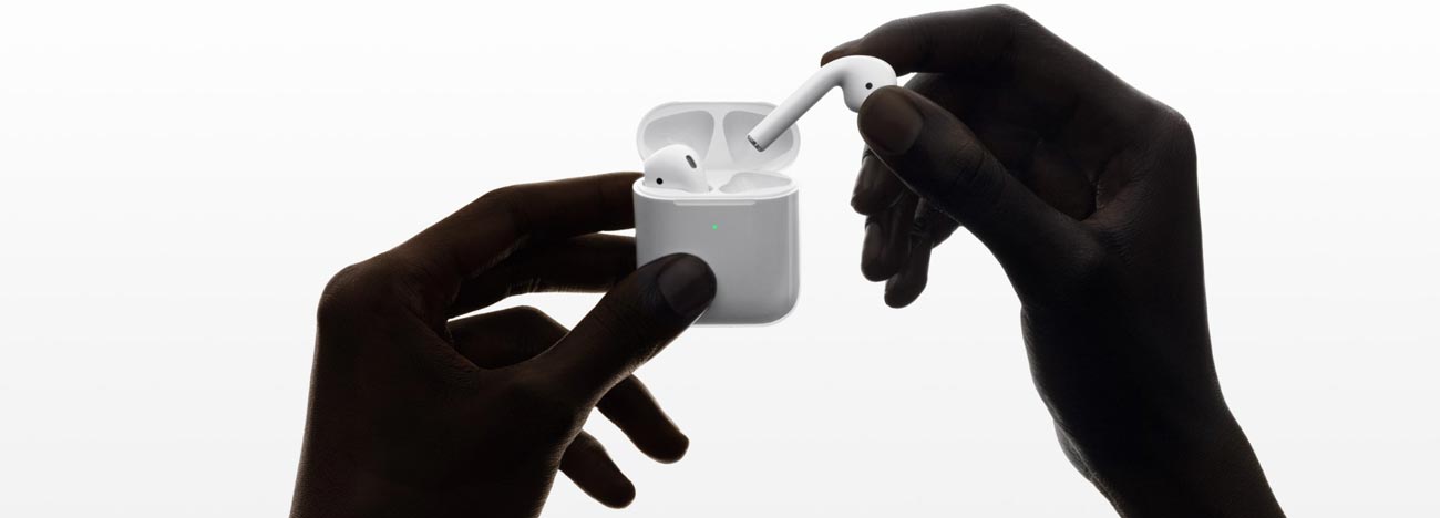 Увеличенное время работы в режиме телефонного разговора. Активация Siri с помощью голоса. Новый футляр с возможностью беспроводной зарядки. Всё это AirPods — уникальные беспроводные наушники. Они подойдут ко всем вашим устройствам. Достаньте их из футляра, и сразу можете пользоваться. Просто наденьте их, и они мгновенно установят соединение, а значит, вы сможете сразу погрузиться в насыщенный качественный звук. Словно по волшебству.
