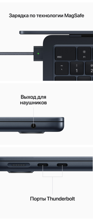 Два порта Thunderbolt/USB 4 с поддержкой: Зарядки, DisplayPort, Thunderbolt 3 (до 40 Гбит/с), USB 4 (до 40 Гбит/с)