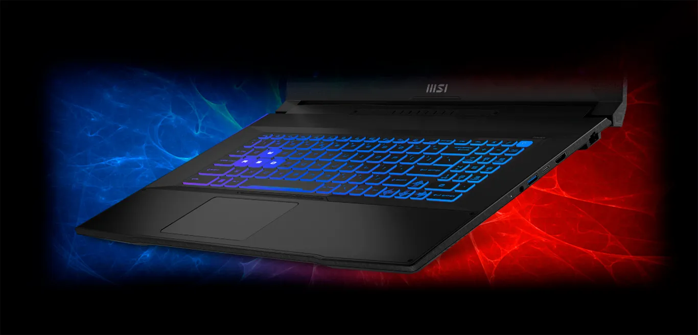 Клавиатура ноутбука серии Katana наделена 4-зонной полноцветной подсветкой с выделенными клавишами WASD. Красочная иллюминация поможет создать подлинно геймерскую атмосферу.
