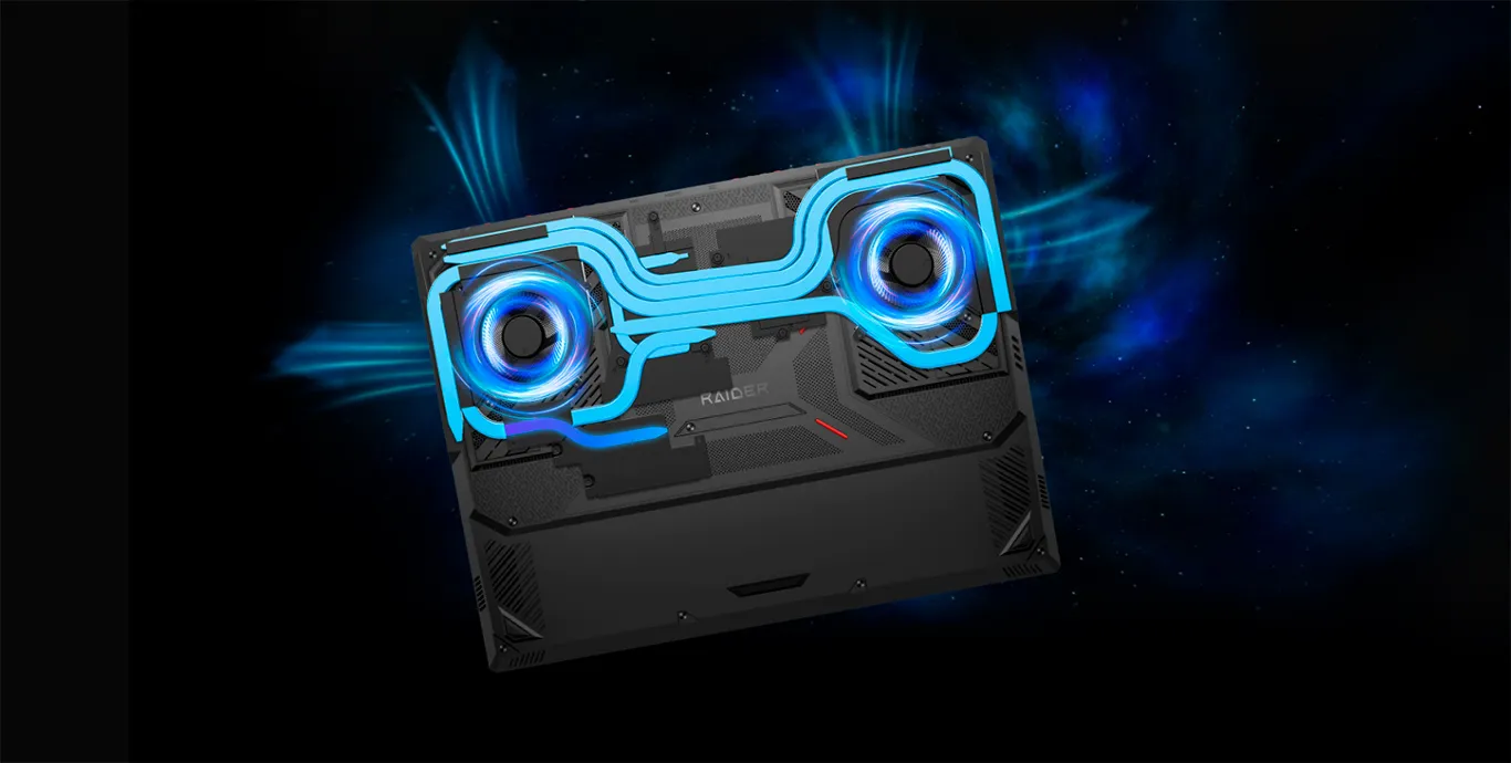 Охлаждающая система Raider A18 HX, оснащенная двумя вентиляторами и семью медными тепловыми трубками, значительно увеличивает эффективность отвода тепла. Конструкция устройства обеспечивает поддержание пиковой производительности даже при интенсивных рабочих нагрузках. Дизайн задней крышки ноутбука оптимизирует воздушный поток для улучшения охлаждения.