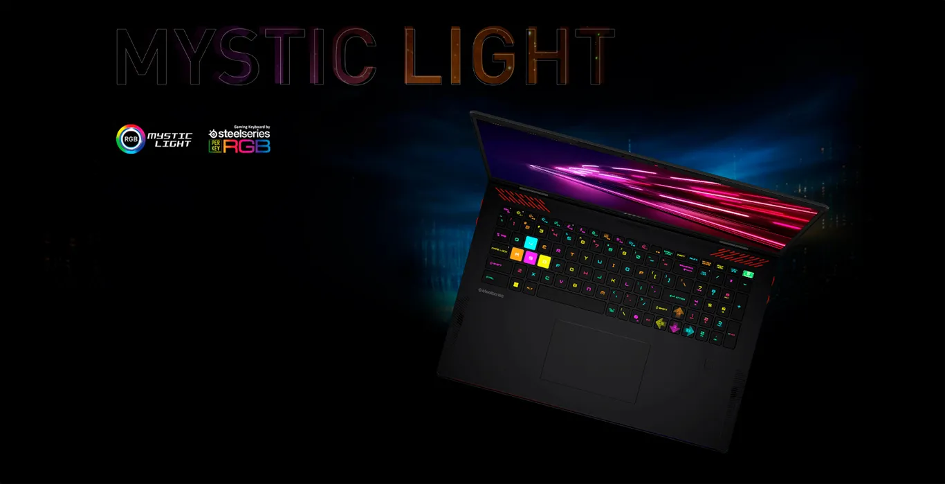 Матричная световая панель Mystic Light в Raider A18 HX представляет собой инновационное решение в сфере RGB-подсветки. Ее конструкция задает новые стандарты эстетики, объединяя передовые технологии и футуристичный дизайн. С поддержкой 16,8 миллионов цветов система позволяет персонализировать настройки, адаптируя подсветку под индивидуальные предпочтения пользователя и усиливая игровое погружение.