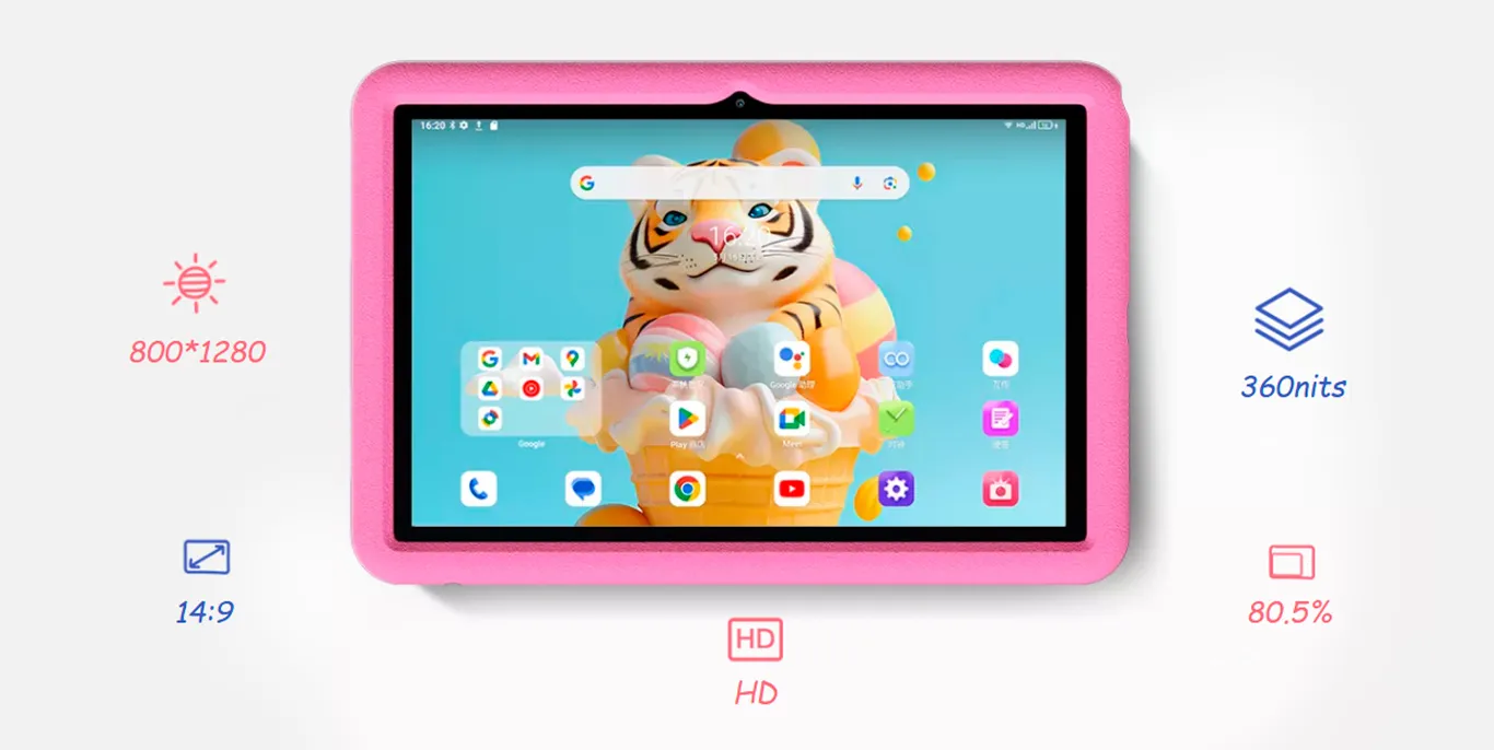 Этот планшет создан специально для детей, а потому его удобно держать в детских руках. Тонкий корпус всего 7,5 мм и небольшой вес делают Blackview Tab 80 Kids идеальным спутником для учебы и развлечений. В то время как плоские края и закругленные углы подчеркивают элегантный дизайн устройства, а прочные материалы обеспечивают надежность при ежедневном использовании.