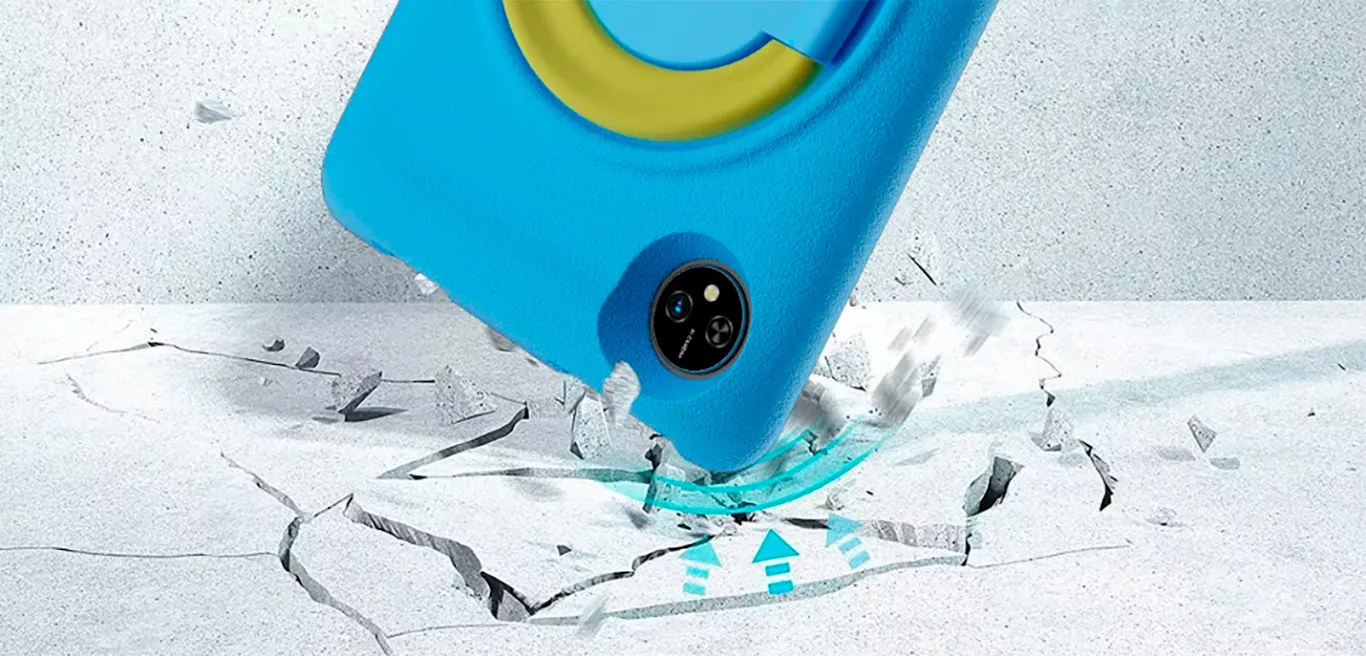 Планшет Blackview Tab 80 Kids поставляется в прочном защитном чехле из мягкого и легкого материала EVA. Он надежно защищает устройство от случайных падений и ударов, не добавляя лишнего веса. И имеет встроенную эргономичную ручку, которая делает его удобным для детских рук. А при необходимости превращается в подставку, обеспечивая комфортный просмотр мультфильмов и онлайн-занятий.