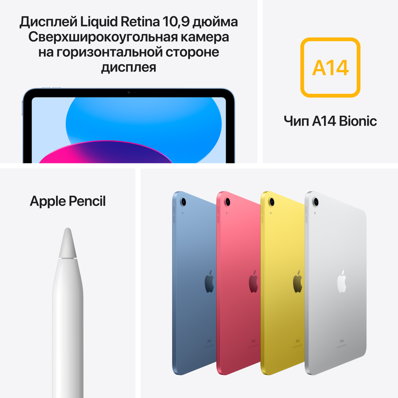 Дисплей Liquid Retina 10,9 дюйма на всю переднюю панель и четыре роскошных цвета корпуса.