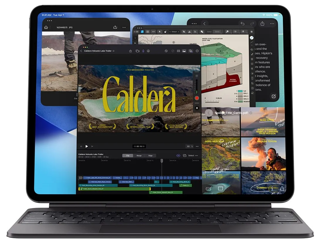 Запускайте професійні додатки4 й працюйте ще ефективніше з iPadOS 26 із дизайном Liquid Glass та з можливостями, що змінюють правила гри.5 Завдяки інтуїтивній і гнучкій системі вікон ви можете контролювати, впорядковувати й оптимізовувати свої робочі процеси як ніколи раніше.