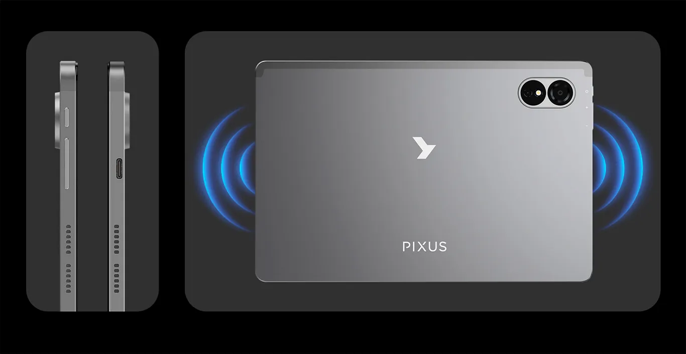 Pixus DEON оснащен двумя новейшими мощными динамиками с усилителем звука, которые создают объемное звучание, полностью погружающее в атмосферу фильма. Благодаря этой аудиосистеме каждый диалог, эффект или музыка зазвучат четко и насыщенно, обеспечивая кинематографическое качество звука. Двухканальная конструкция равномерно распределяет звук, независимо от того, как вы держите планшет. Так что ничто не будет мешать комфортному просмотру кино.