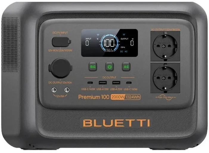 Зарядная станция BLUETTI Premium 100 V2 1000Wh 277000mAh 2000W (PB931460) — это воплощение передовых технологий и мощности, сочетающееся с высоким качеством и надежностью. Это устройство обеспечивает бесперебойную подачу электроэнергии, что делает его идеальным выбором для тех, кто ищет надежный источник питания в любых условиях. Зарядная станция поддерживает два способа зарядки: от сети и от солнечной батареи, что позволяет использовать ее даже в отдаленных местах. С емкостью 1024 Вт/ч и номинальной мощностью 2000 Вт, она способна обеспечить питание для различных устройств в течение длительного времени. Максимальная мощность (X-Boost) достигает 3600 Вт, что позволяет подключать более мощные устройства без риска перегрузки.