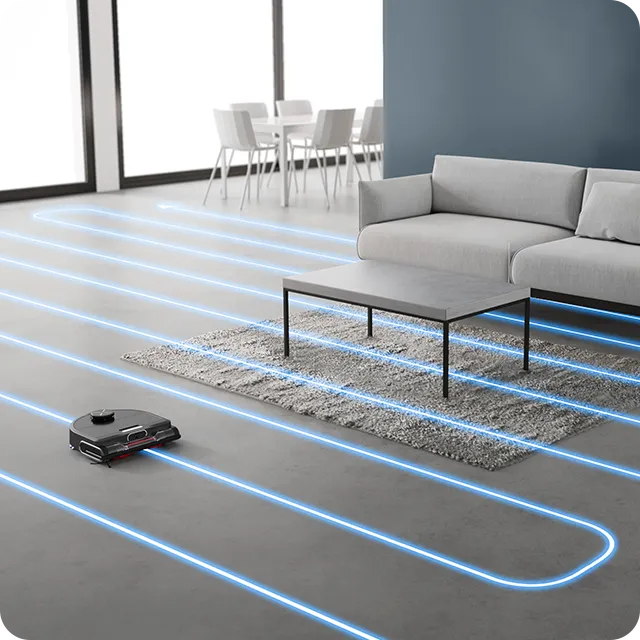 Робот-пылесос охватывает до 120 м² за один проход и возвращается к док-станции для подзарядки перед автоматическим восстановлением уборки.