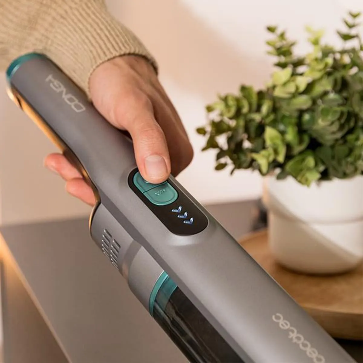 Убирайте проще, управляя мощностью. Conga Rockstar Micro+ предлагает два режима — Eco и Turbo. Первый подойдет для уборки легкой пыли, второй — справится даже со сложной грязью, например, с шерстью на обивке дивана.