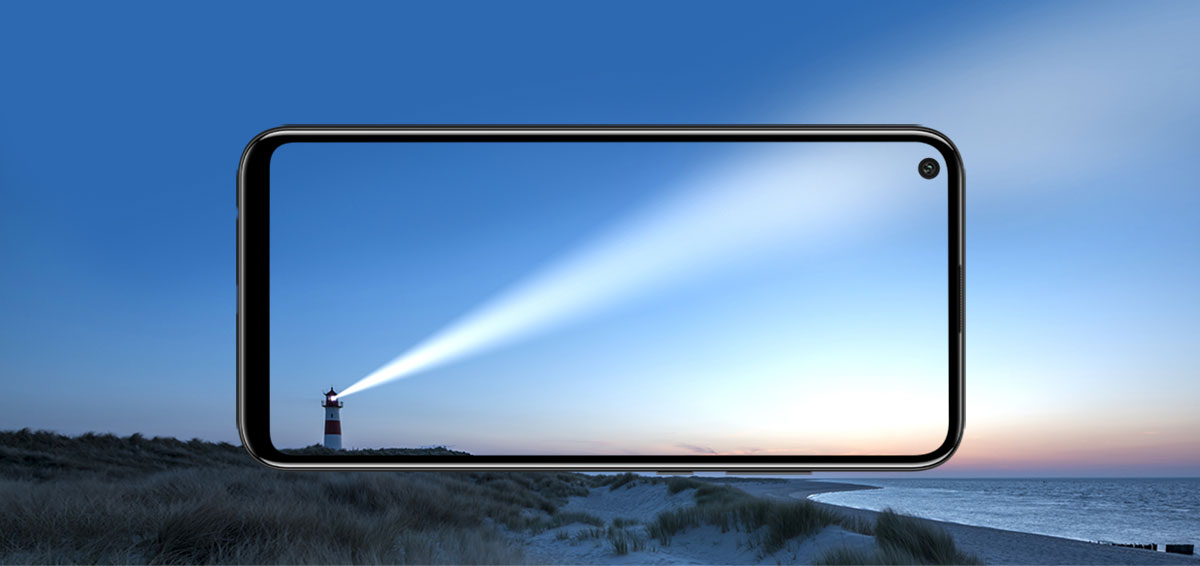 Смартфон Huawei P40 lite e с безрамочным экраном 6,39 дюйма2 со встроенной фронтальной камерой предоставляет широкий обзор с соотношением экрана к передней панели 90,15%3, обеспечивая эффект полного погружения. Вырез в верхней части экрана идеально совпадает с объективом фронтальной камеры. Этот инновационный дизайн позволяет уменьшить размер диафрагмы и убрать лишние компоненты с экрана, обеспечивая широкий обзор и невероятные впечатления от просмотра контента.