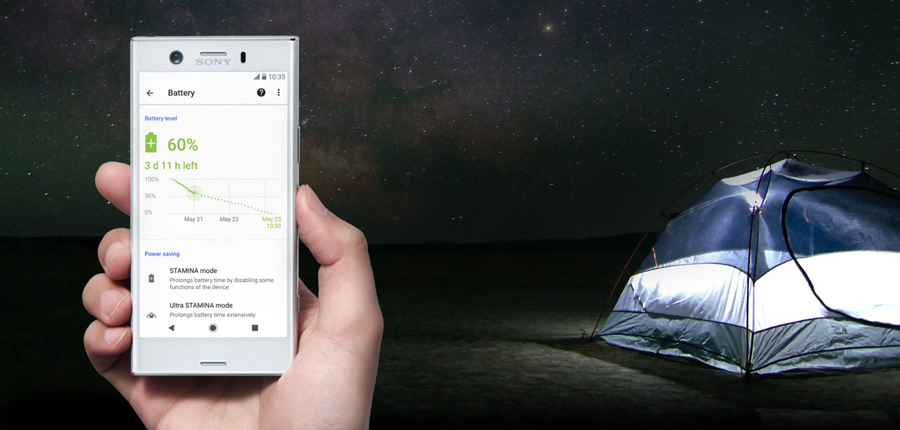 Xperia XZ1 Compact оснащен емким и мощным аккумулятором. Если вам приходится активно пользоваться смартфоном, функция Smart Stamina рассчитает расход заряда наперед и поможет сохранить его на целый день.