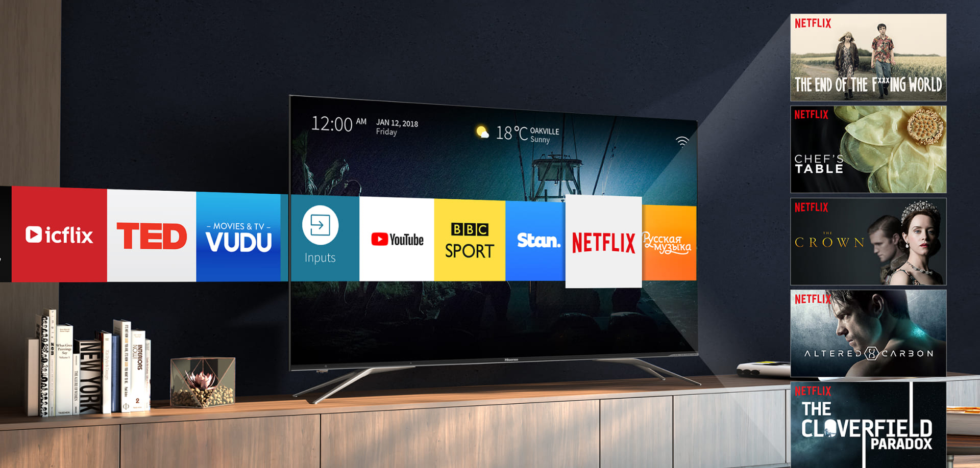 Операционная система VIDAA U доступна в одно касание и обладает большим количеством предустановленных приложений, а так же позволяет без особых усилий быстро загрузить все нужные приложения на главную страницу.