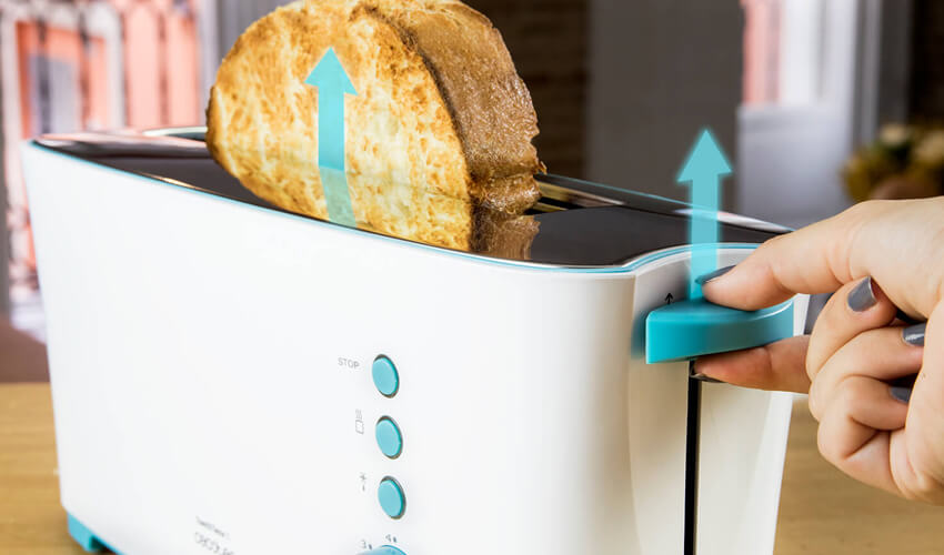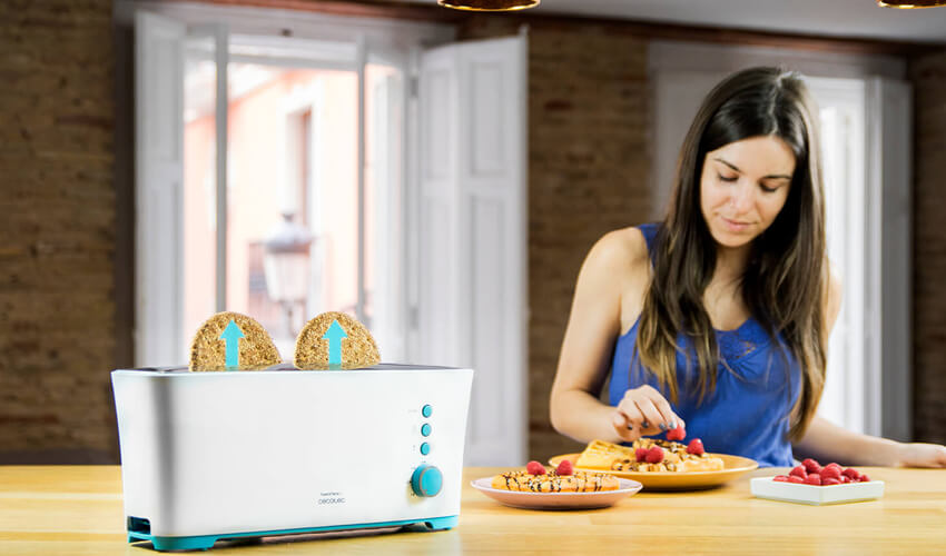 Для облегчения извлечения тостов просто немного поднимите рычаг. Готовить завтрак будет намного удобнее с тостером CECOTEC Toast&Taste 1L без лишних заморочек и с удовольствием.