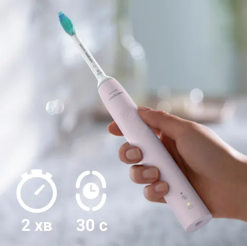 В случае слишком сильного давления на десну, зубная щетка будет подавать пульсирующий звук, чтобы вы уменьшили давление во время чистки.