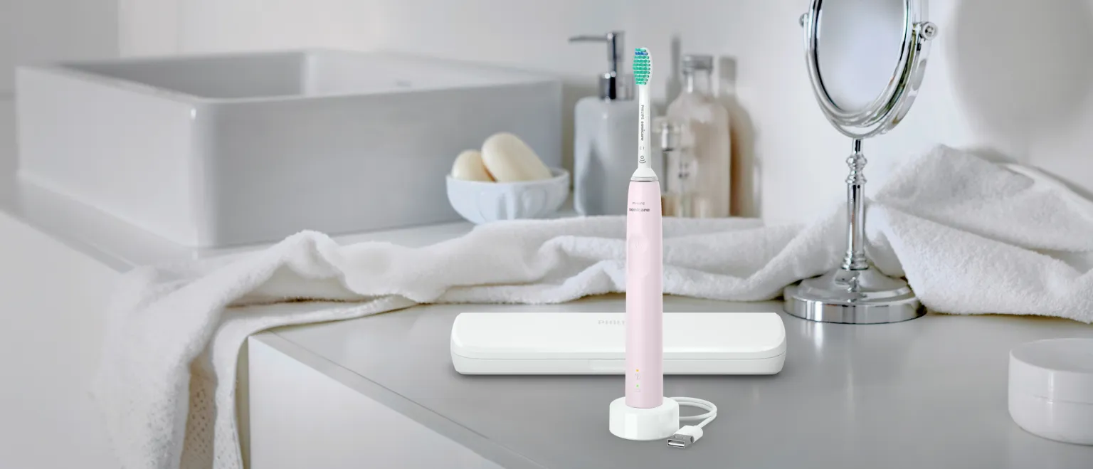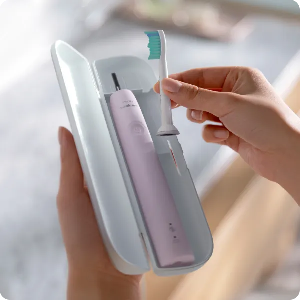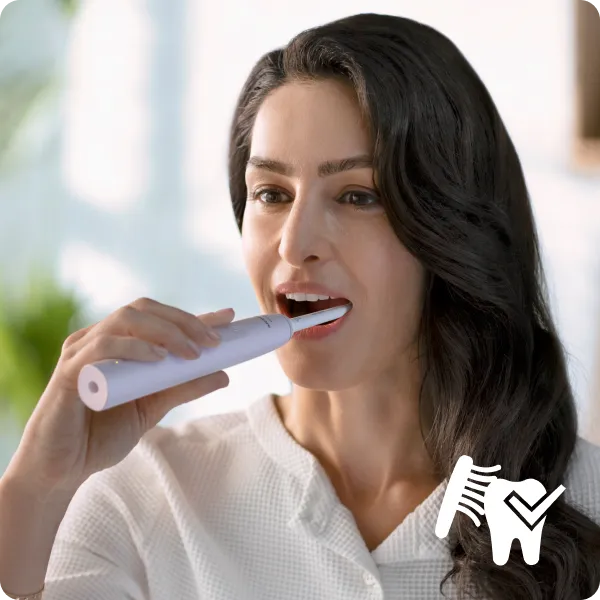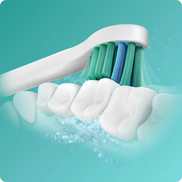 Кончики щетинок насадки вибрируют и создают поток жидкости из воды, глубоко очищающей между зубами и вдоль десен. Это динамическое действие отделяет Philips Sonicare от других зубных щеток.