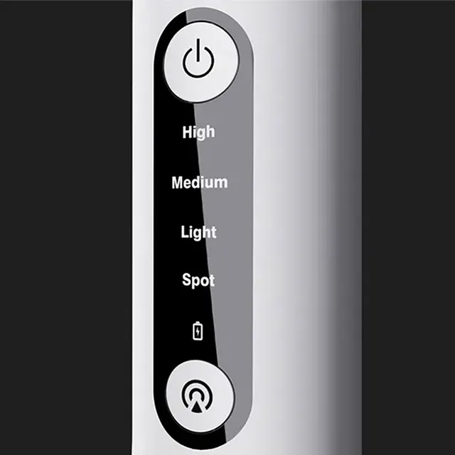 Три режима — легкий, средний и высокий, обеспечивают спектр интенсивности и давления струи воды для различных состояний зубов, десен и их чувствительности. Подходит для тех, кто предпочитает мягкую чистку зубов, а так же для пользователей, кто нуждается в более интенсивной чистке, обеспечивая индивидуальный и комфортный опыт. Точечный режим — для целенаправленной и мощной чистки определенного участка. Каждый режим чистки ирригатором имеет 3 дополнительных уровня интенсивности. Эта функция позволяет точно настроить работу ирригатора, обеспечивая идеальный баланс между тщательной очисткой и бережным уходом.
