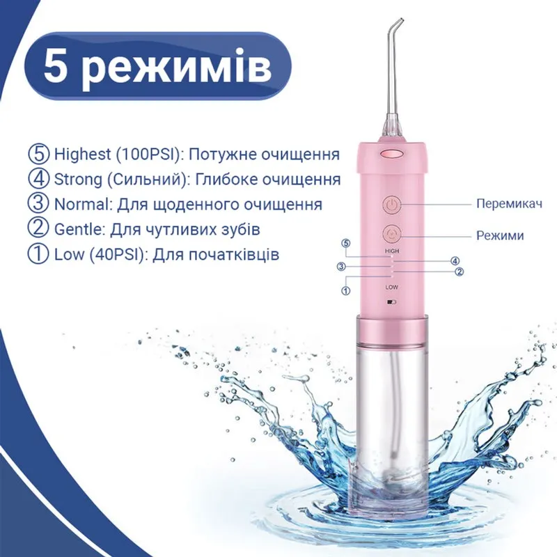 Ирригатор H2OFloss HF-10 оснащен двигателем с высоким давлением воды, который позволяет глубоко очищать межзубные промежутки. Большой резервуар для воды обеспечивает продолжительную работу без необходимости частого долива, а регулировка давления позволяет выбрать комфортный режим под собственные потребности. Благодаря продуманной конструкции и эргономичной ручке использование ирригатора максимально удобно — даже при длительных процедурах. Водонепроницаемый корпус гарантирует безопасную эксплуатацию в ванной комнате.