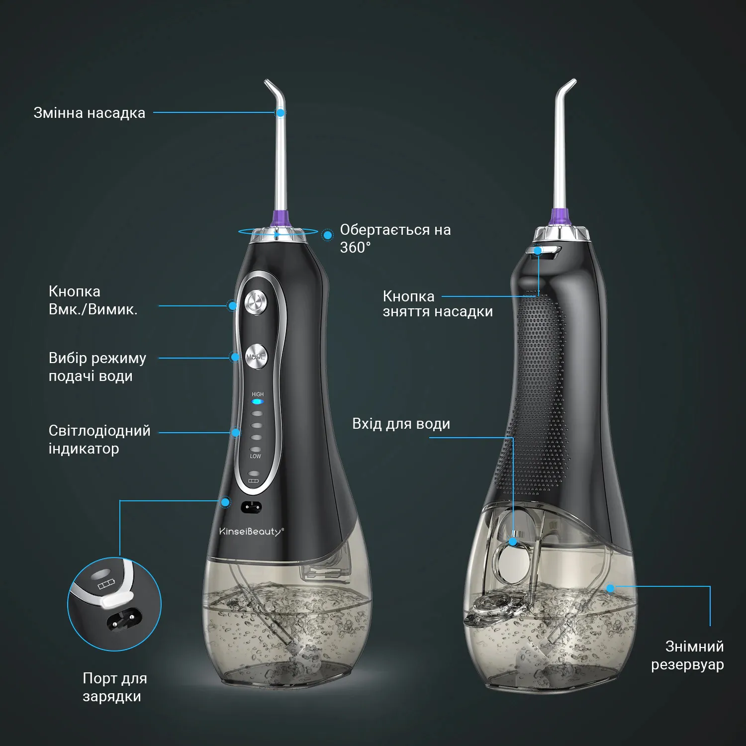 H2OFloss HF-6Р оснащен литиевой батареей емкостью 2500 мАч, которая обеспечивает мощное и стабильное давление воды — выше, чем у большинства портативных моделей. Резервуар объемом 300 мл позволяет провести полную процедуру очистки без необходимости долива. Устройство поддерживает пять режимов давления, поэтому пользователь может настроить интенсивность под свои индивидуальные потребности. Благодаря защите от перегрева и влагозащите IPX7, ирригатор безопасен даже при использовании во влажных условиях. Уникальный гравитационный шар обеспечивает стабильную подачу воды независимо от положения устройства — даже при перевернутом использовании.