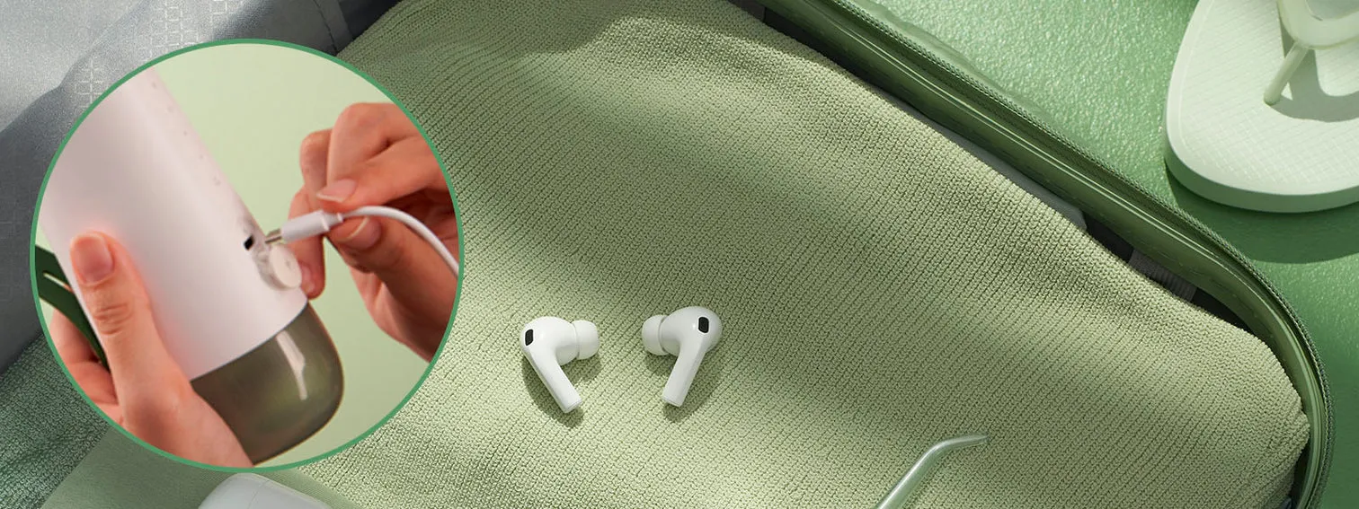 Часто путешествуете? Возьмите Oclean W10 с собой! Компактный и удобный, он без проблем поместится в дорожную сумку. Ирригатор работает на одном заряде 4 недели, а маленькая зарядка с кабелем USB Type-C поможет быстро пополнить ресурс аккумулятора.