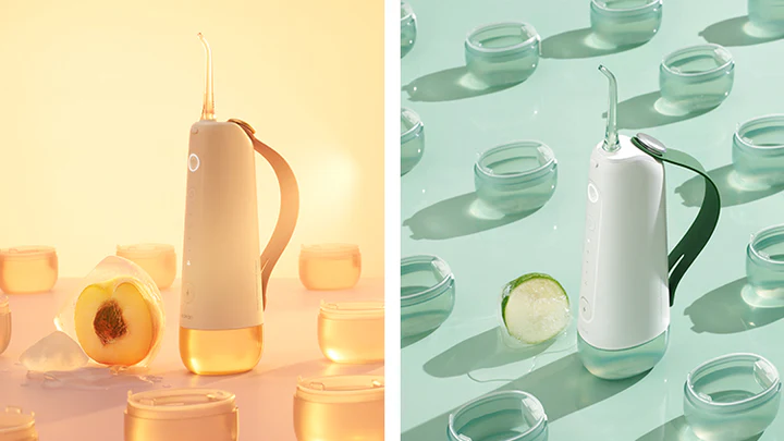 Oclean W10 - не просто удобный ирригатор. Благодаря сочетанию эстетики и практичности он еще и интересно выглядит. Белый корпус с отталкивающим покрытием гармонично сочетается с деталями лаймово-зеленого цвета - ремешком, резервуаром, насадками и чехлом для перевозки девайса.