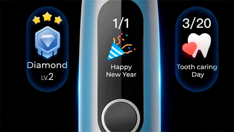 После каждой чистки зубов вы всегда можете оценить работу для соблюдения регулярных процедур чистки, а так же получить вознаграждение в личных достижениях.
