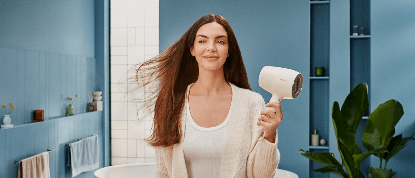 Фен Philips с технологией SenseIQ имеет вдвое больше заряженных ионов**** для здоровых на вид, сияющих и блестящих волос.