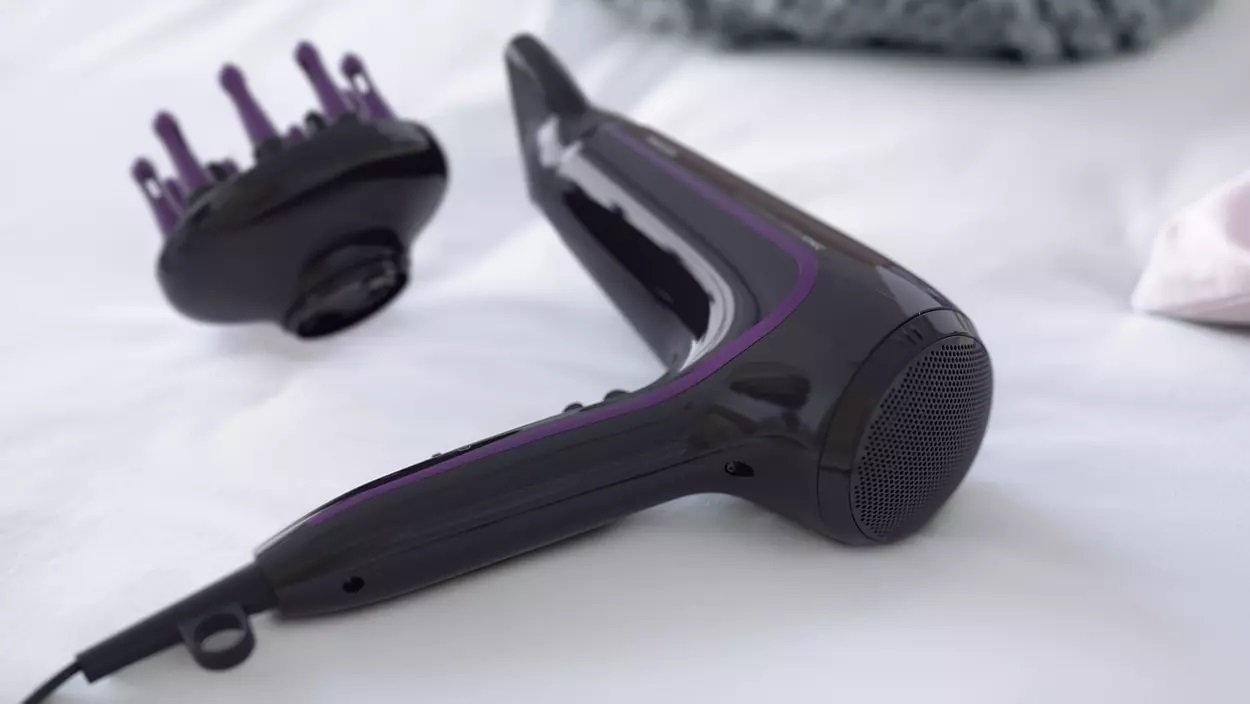 Удобная массажная насадка-диффузор ассиметричной изогнутой формы значительно облегчает укладку. Благодаря равномерному распределению воздушного потока диффузор обеспечивает более бережную сушку, придает дополнительный объем волосам и уменьшает их спутывание. Массаж благотворно воздействует на кожу головы, повышая жизнеспособность волос. Для наилучших результатов поместите прибор рядом с теменной областью, ближе к корням волос: массажные пальчики диффузора помогут придать волосам объем, упругость и создать локоны.